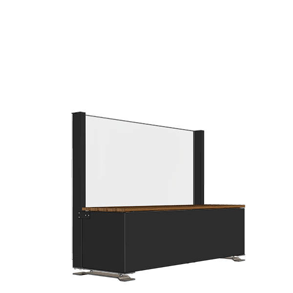 Vindskjerm som frittstående seksjon ved å kombinere CiUWindscreen med plantekasse eller benk.
